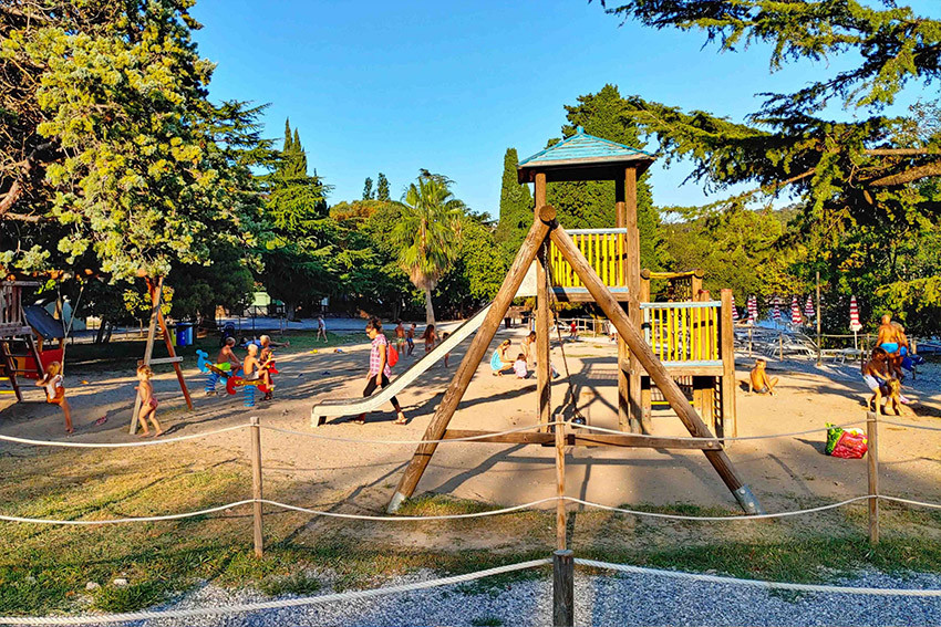 At the campsite, you’ll find everything you need for a relaxing family holiday. Take a refreshing swim in the semi-olympic pool or unwind in the jacuzzi, while younger children enjoy the paddling pool. Surrounding the pool is a spacious sun terrace with sun loungers. There is also a brand-new wellness area with an infinity pool and restaurant, both overlooking the bay. The campsite restaurant is known for its excellent pizzas and local specialities, while the bar is the perfect place for a good espresso or an aperitif. In addition, the campsite offers a supermarket and various sports facilities, including volleyball and football pitches, a tennis court and a fitness room. Children can have fun for hours in the playground, and during the high season the animation team provides plenty of entertainment with games, tournaments and evening shows for the whole family.