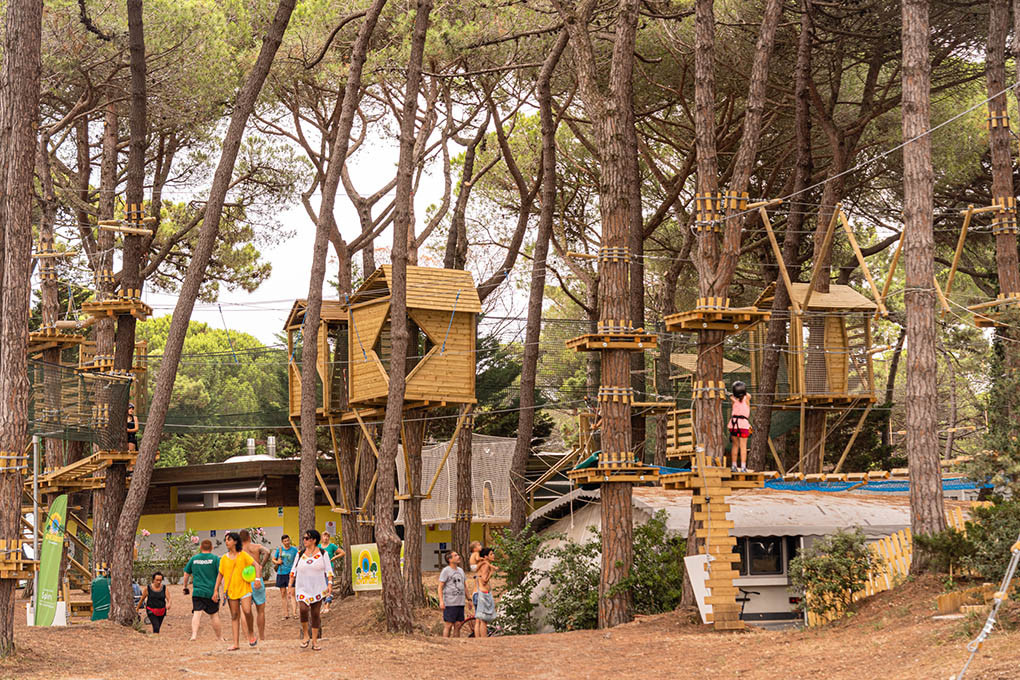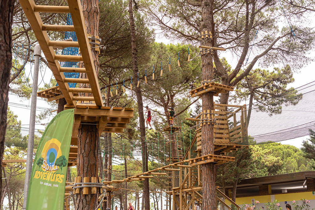 What truly makes Spina Family Collection special is its very own adventure park with a treetop climbing course right on the campsite. Up in the trees, you can take on challenging routes reaching up to 15 metres high, highly recommended for families looking for a bit more excitement and action. And when it’s time to eat or drink, there’s no need to leave the campsite: choose from restaurants and bars for a pizza night or a cappuccino, and pick up your daily essentials at the on-site supermarket.