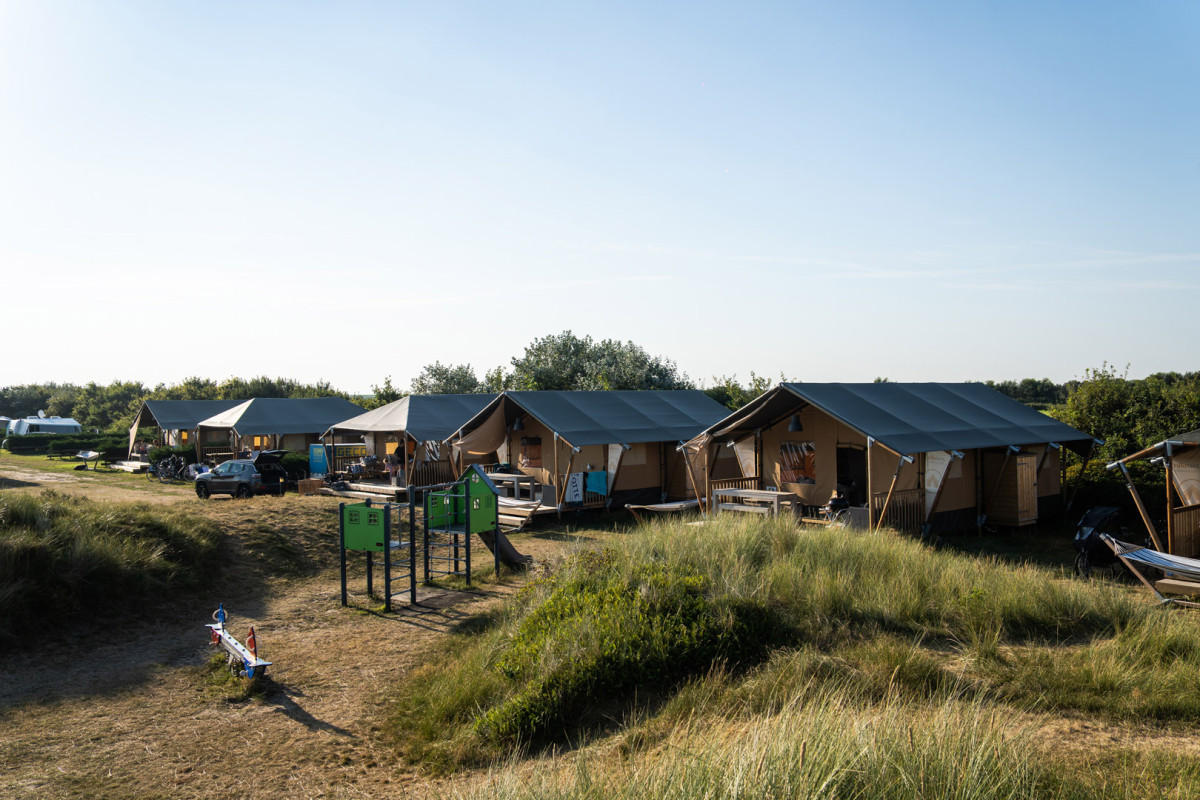 On Ameland, the Villatent Ranger, Villatent Nomad, and Villatent Cottage are ready to welcome you. Each tent is equipped with private sanitary facilities and a fully furnished kitchen with a stove, refrigerator, and kitchen utensils. The tents also feature their own terrace and are located together on a cozy field with a small playground. From the entrance of Vakantiepark Klein Vaarwater, the tents are easily accessible, both by car and by bike.